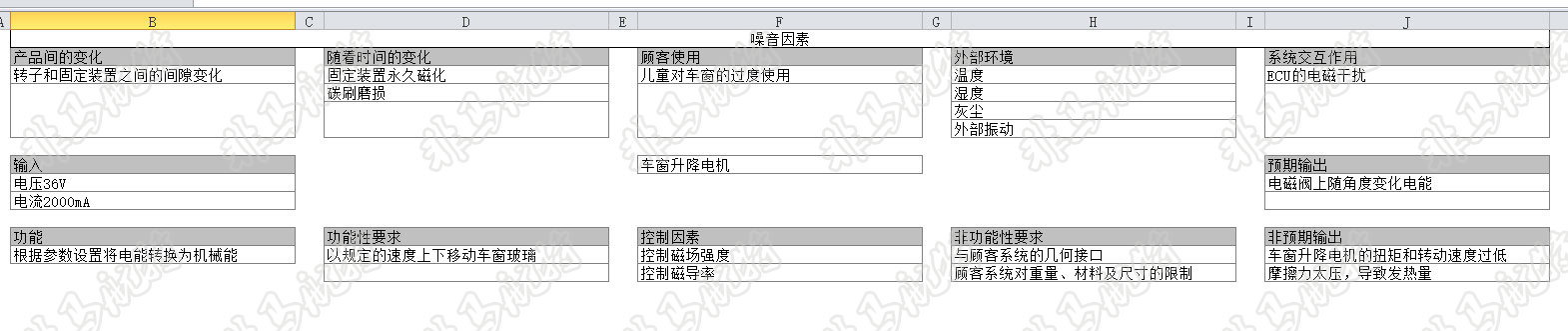 Parameter diagram (P diagram) is a common system analysis tool, which is composed of dynamic input (including signal), factors that may affect system performance (control factors and noise factors), variation source and output (expected output and unexpected output). At the same time, the new standard adds functional, functional and non-functional requirements.